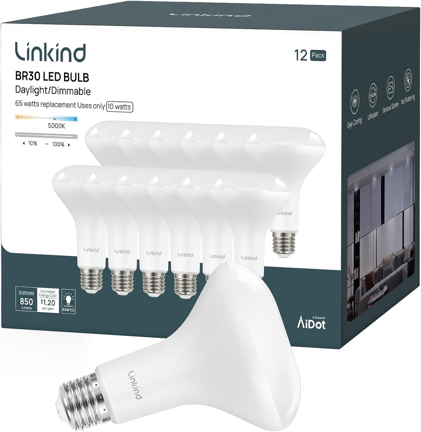 Smooth Dimming & Eye Caring – Compatible with most LED dimmers on the market, Linkind BR30 dimmable indoor flood light bulbs feature smooth dimming capacity ranging from 10% to 100%, perfect for you to adjust the brightness at your preference. No flickering, no humming, no harmful UV or IR radiation, these BR30 LED Bulbs prioritize eye comfort, preventing eye fatigue and providing instant-on lighting.