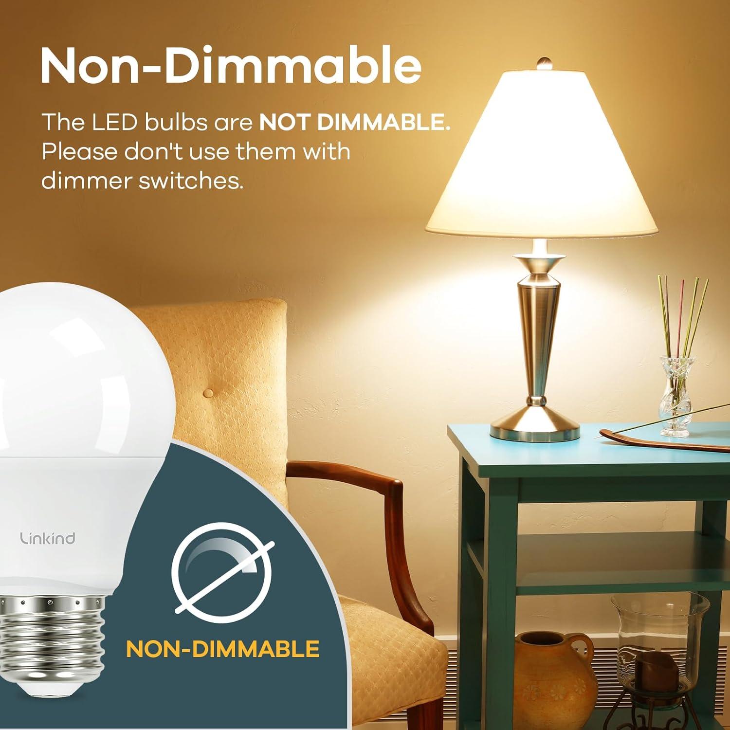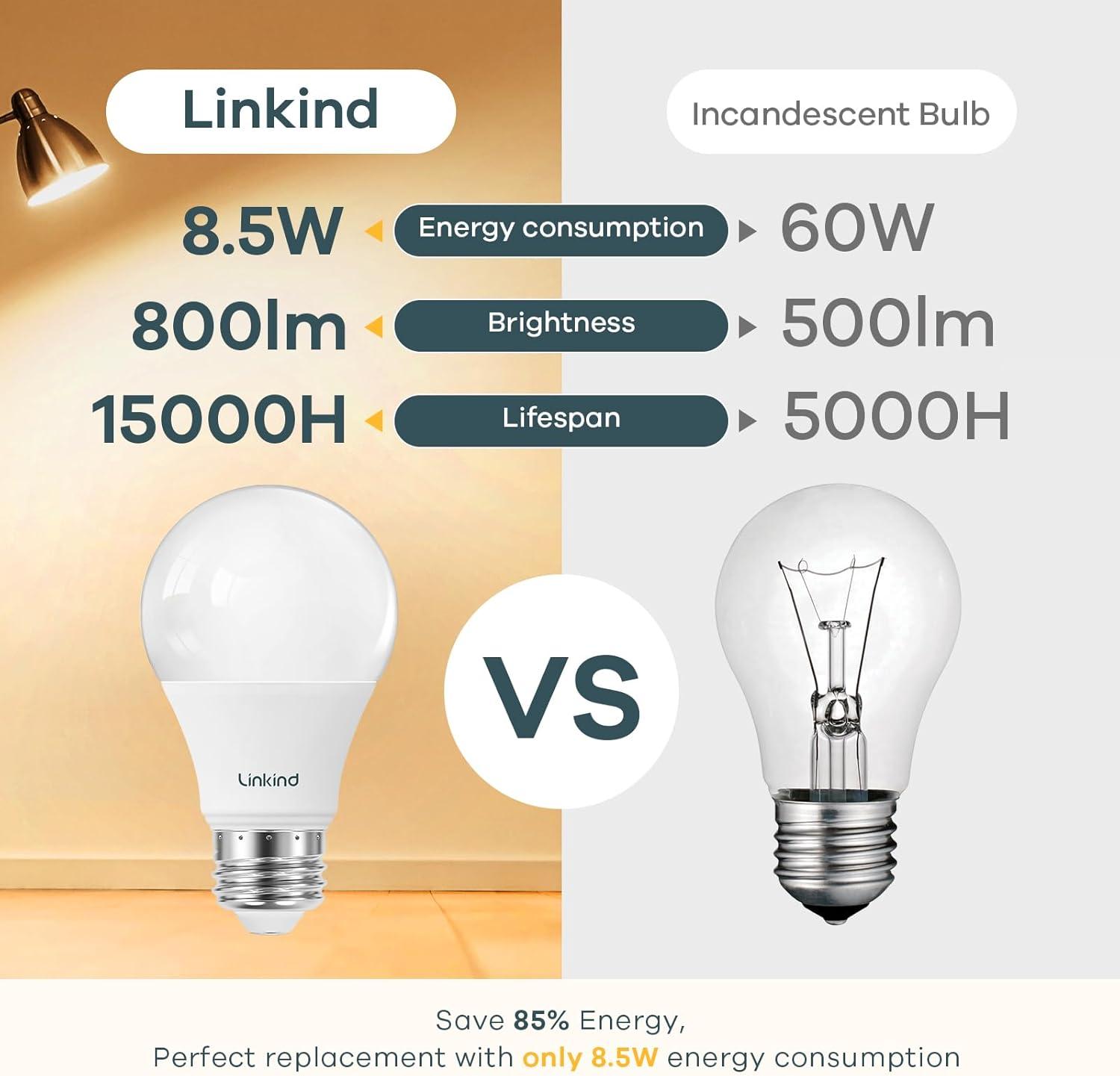 Energy Efficient– Adopting energy-efficient LED chips, Linkind non-dimmable A19 LED light bulbs save up to 85% on your electricity bill by replacing 60 watts incandescent light bulbs. They provide more energy efficiency but less heat output, making them a great alternative to 60W incandescent bulbs.