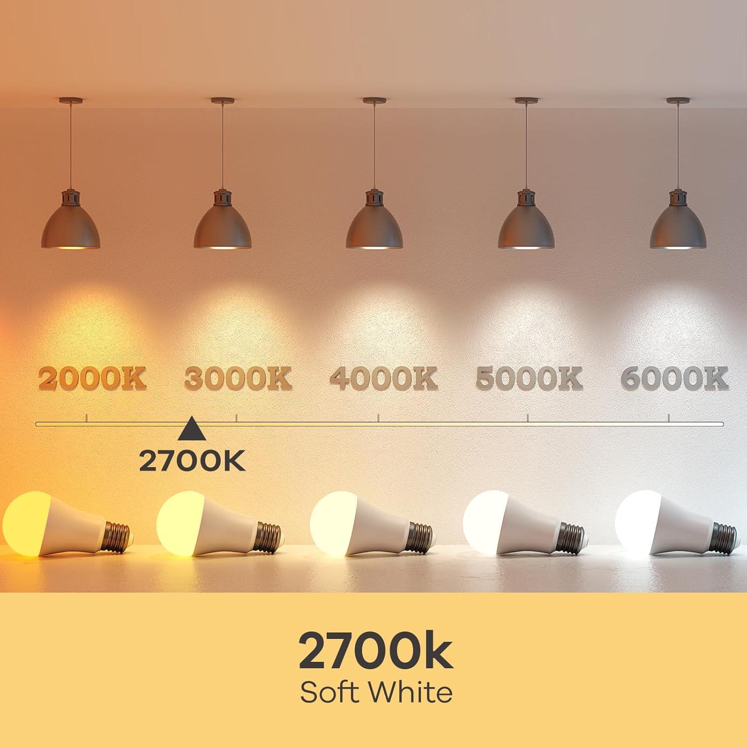 Linkind A19 LED Light Bulb, 60W Equivalent, 2700K Soft White Light Bulbs, 800 Lumens 8.5W Non-Dimmable LED Bulbs, E26 Standard Base, Energy Efficient for Bedroom Home Office, 6 Packs(Soft White-60 Watt 4 Pack)