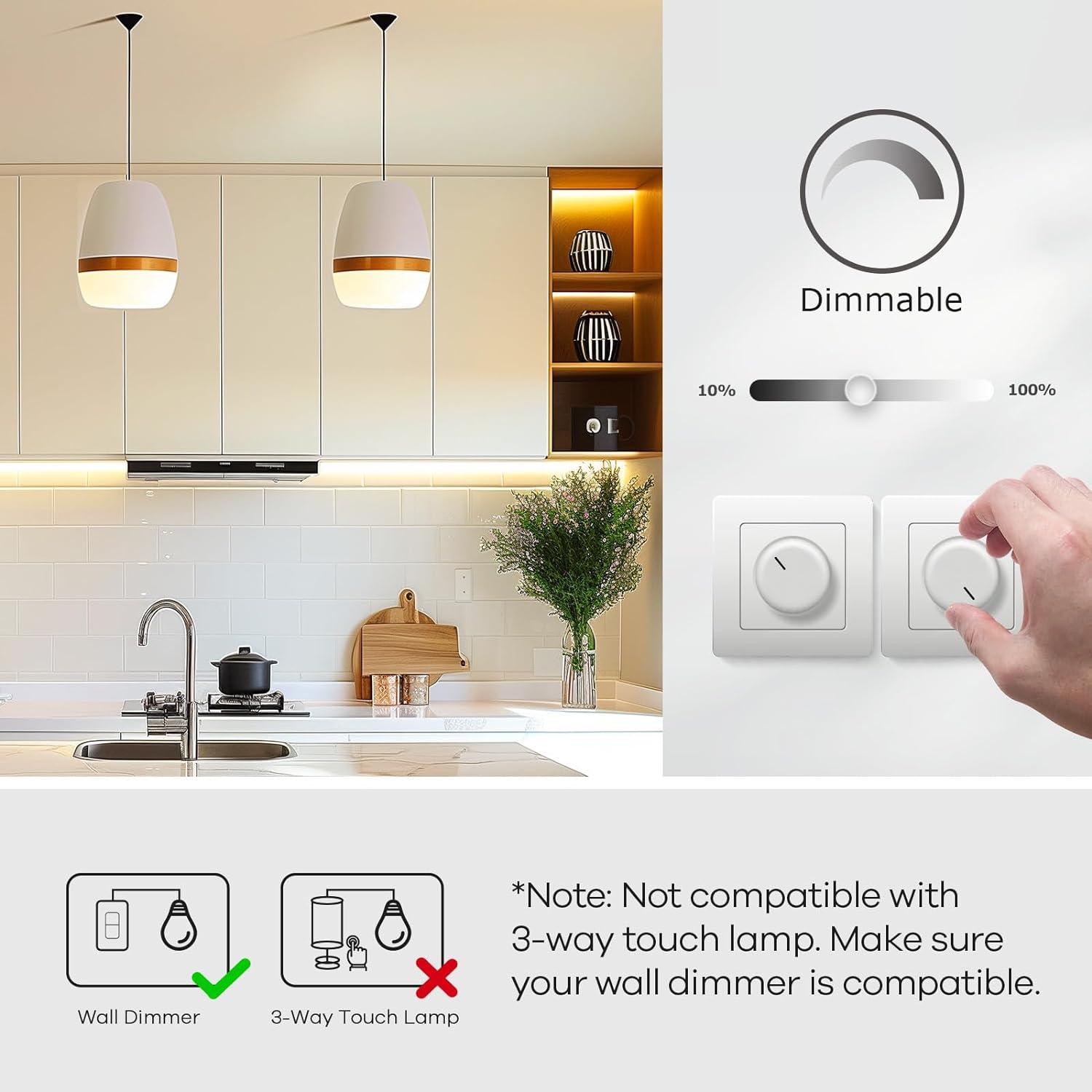 ✔ SMOOTH & DIMMABLE: Compatible with most LED dimmers to have smooth dimming control with the lowest brightness at 10%. 2700K soft and warm white. Dim to create your favorite brightness to control the look and feeling of your space. No buzzing, no humming, and no flickering.