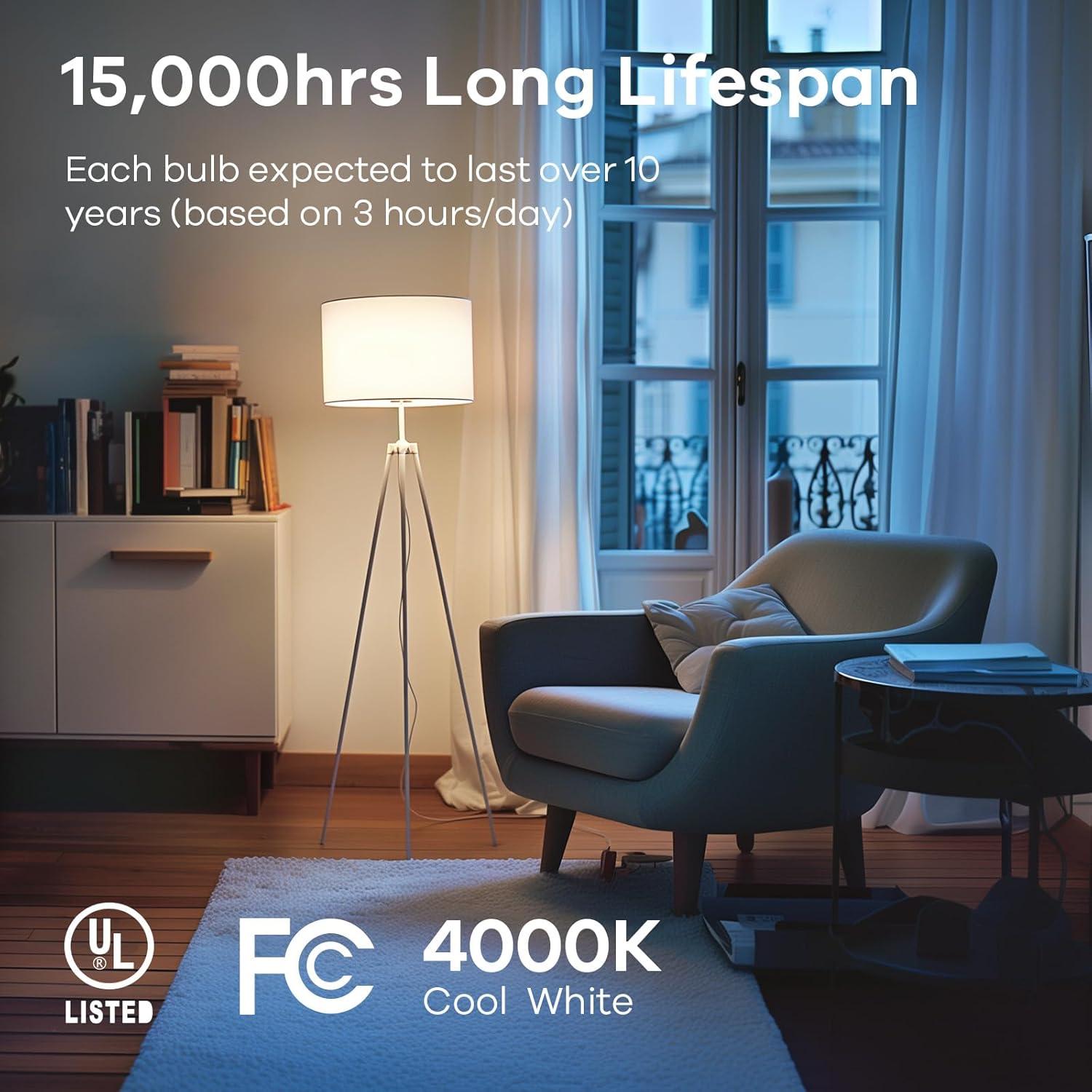 imageLinkind A19 LED Light Bulbs Dimmable 40 Watt Equivalent E26 Base 2700K Soft White 5W 450 Lumens CRI80 120V UL Listed FCC Certified LED Lights for Bedroom Living Room Home Office 6 PacksCool White 4000k