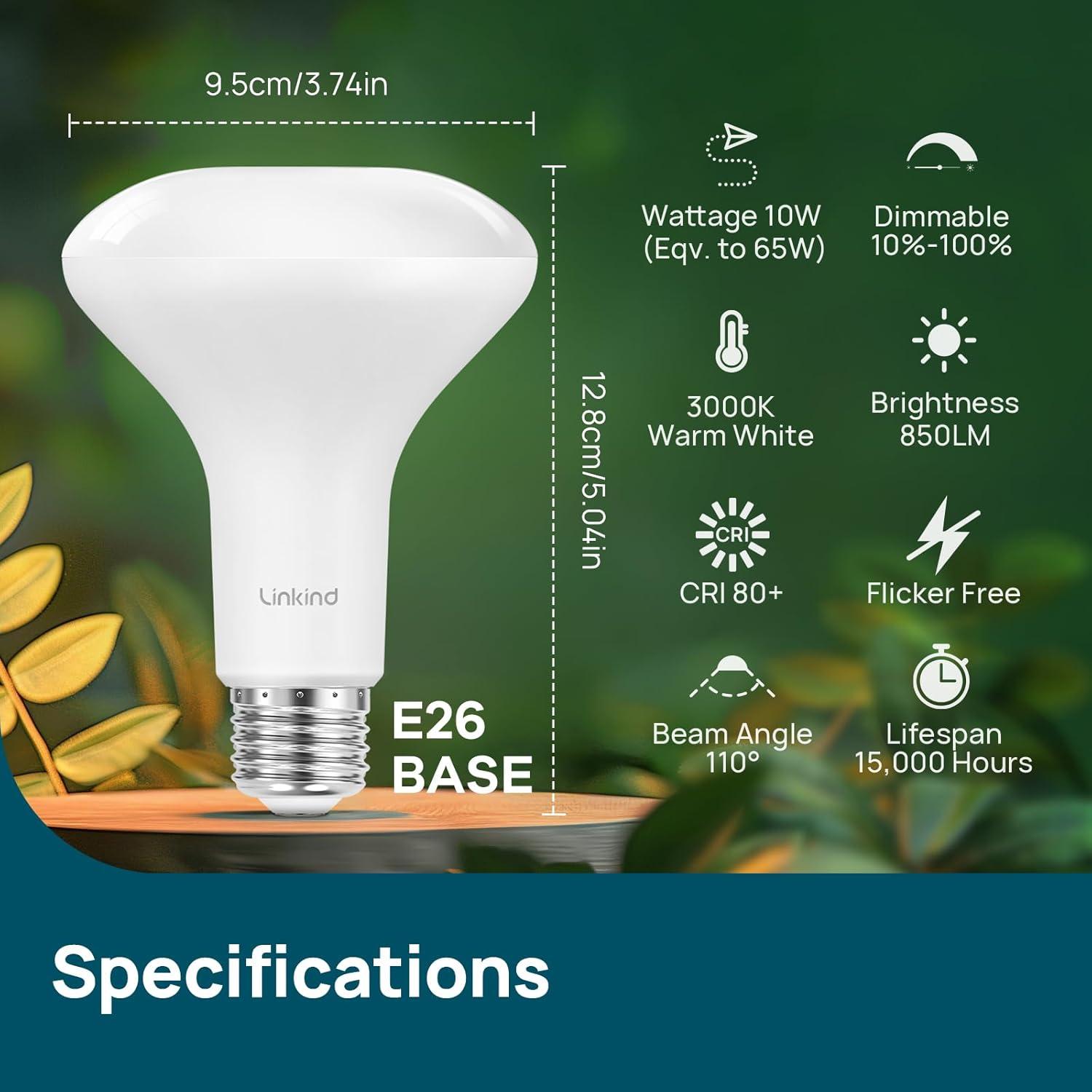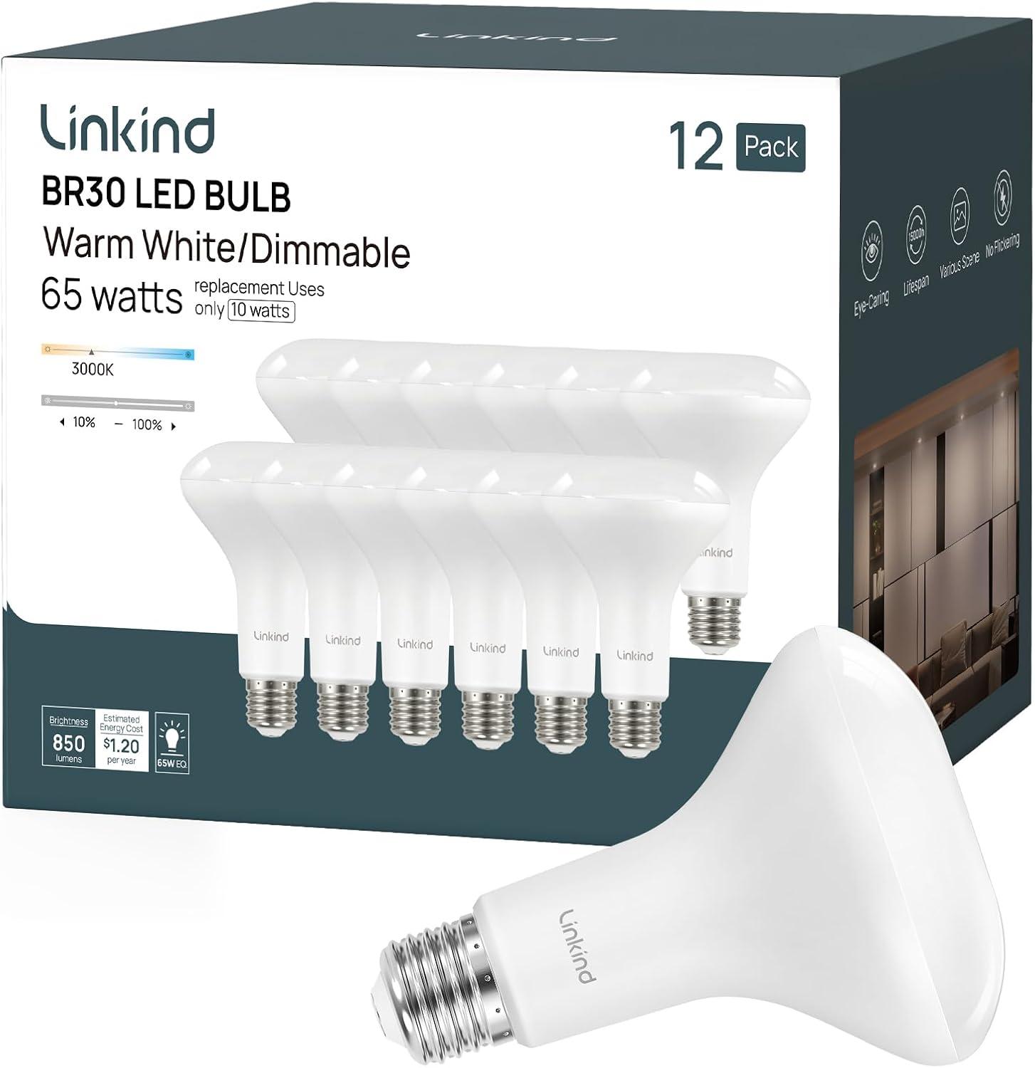 3000K Warm White Glow – The instant-on Linkind BR30 LED recessed can light bulbs give off 850 lumens of 3000K Warm White light, bright enough to illuminate your space and creating a warm and cozy atmosphere for you. NOTE: Please confirm the Kelvin (K) value. This is the most accurate way to select your desired light color. This bulb is 3000K light, which produces a warm ambience light. It is not a Bright White or Daylight White bulb. If you prefer a whiter light, please consider our 4000k Cool White or 5000K Daylight options.