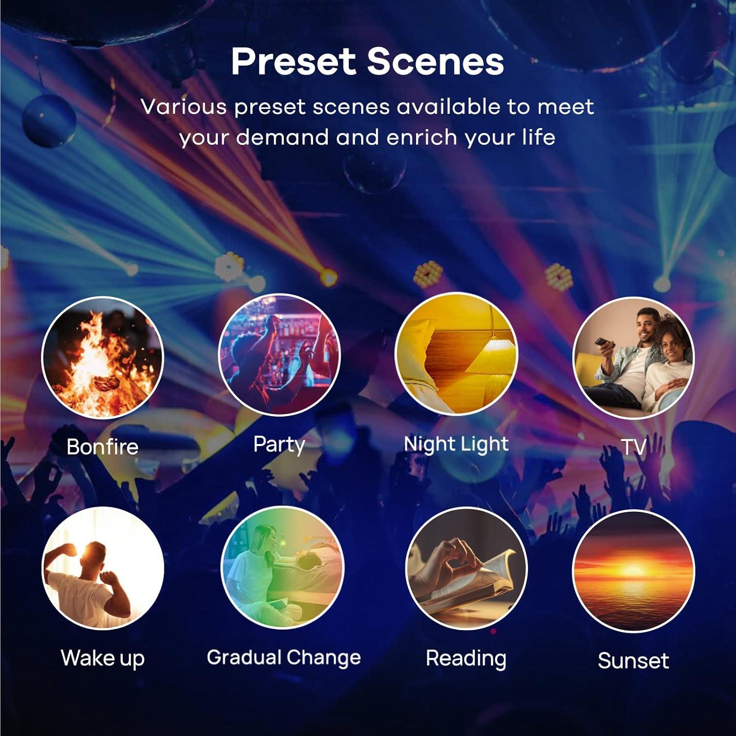 💡[Preset Scenes & Time Schedule] Schedule the Linkind smart bulb to auto-on/off on your routine on the app. Choose the preset scenes to decorate your house according to different festival.