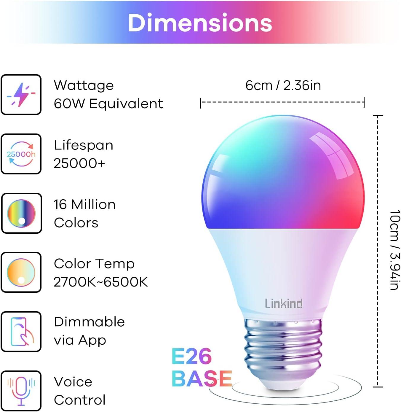 💡[Color Changing Smart Light Bulbs] Linkind smart bulb provides 16 millions color, colorful your life.2700K soft white to 6500K cool white as daily lighting.