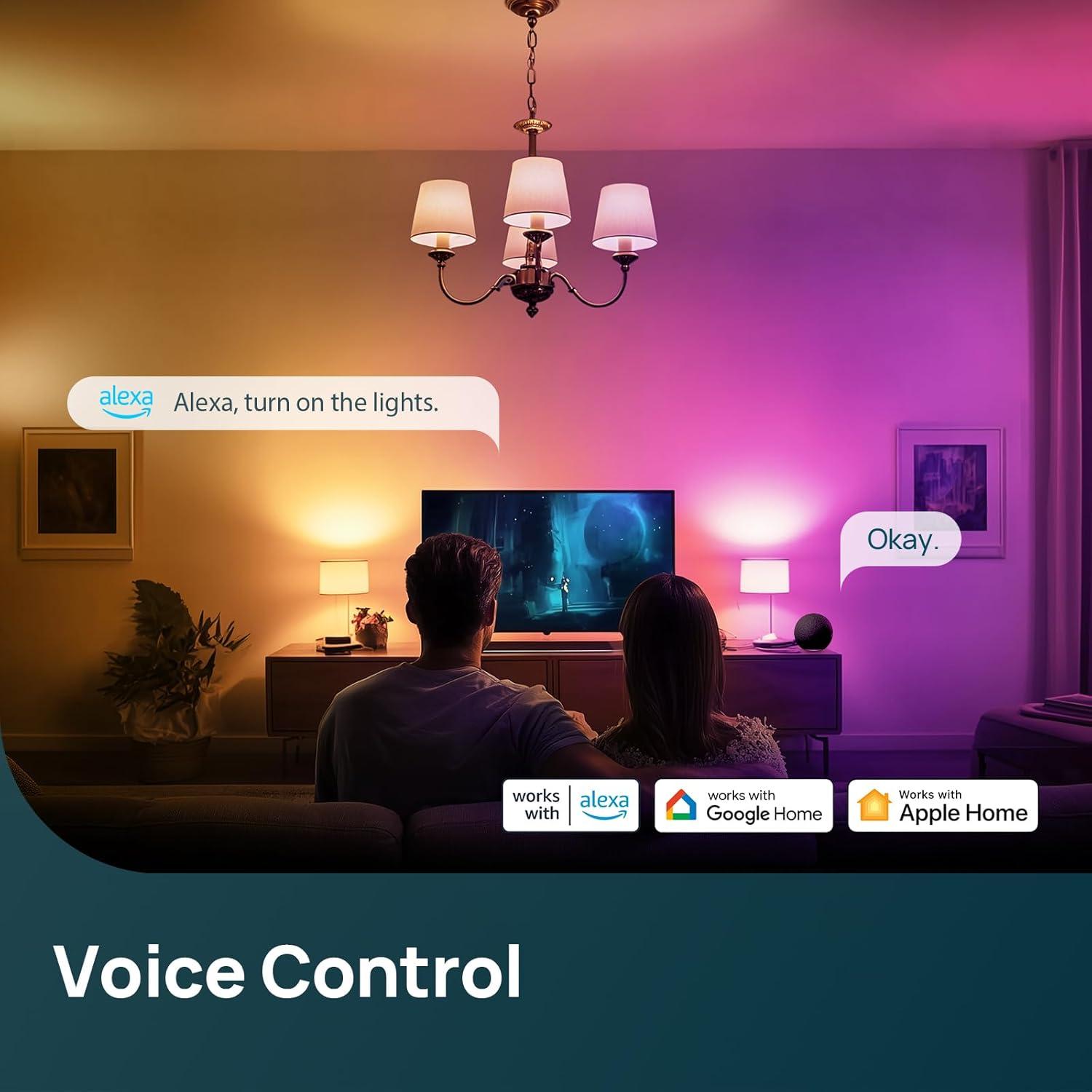 【Alexa & Google Home Voice Control】Smart Bulbs That Wor k with Alexa & Google Home. Enjoy hands-free control using simple voice commands. Amazon smart bulbs turn lights on/off, adjust brightness, and change color temperature with compatible alexa devices for home or Google Assistant devices.