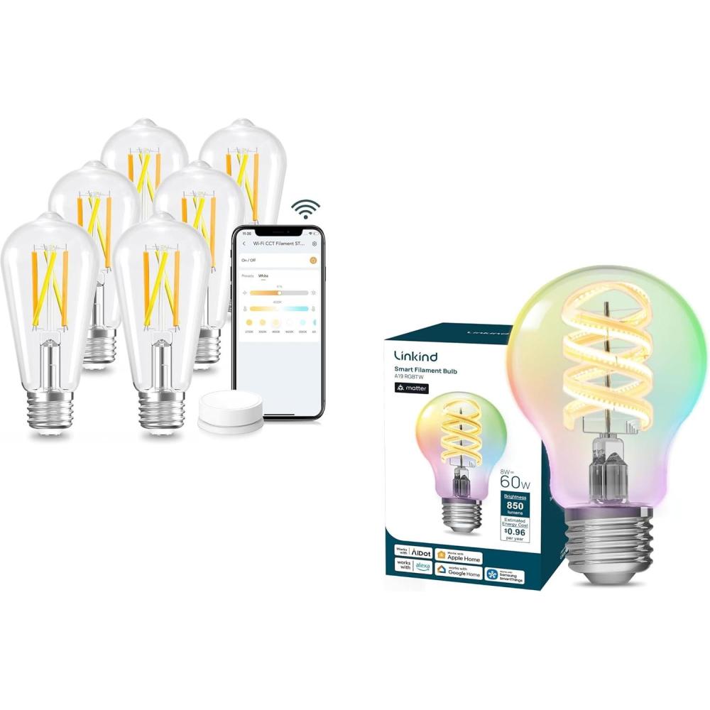 【Vintage Edison Design with 16M Color Ambiance】This smart vintage LED filament bulb marries classic Edison aesthetic with modern lighting intelligence—more than a light source, it’s a visible piece of decorative art for your chandelier, pendant light, or exposed fixture. Beyond its retro charm, unleash 16 million colors and tunable white light (1800K-6500K warm to cool white) for any mood. With High CRI 90+, your favorite artwork, plants, and even evening skin tones glow with exceptionally vivid