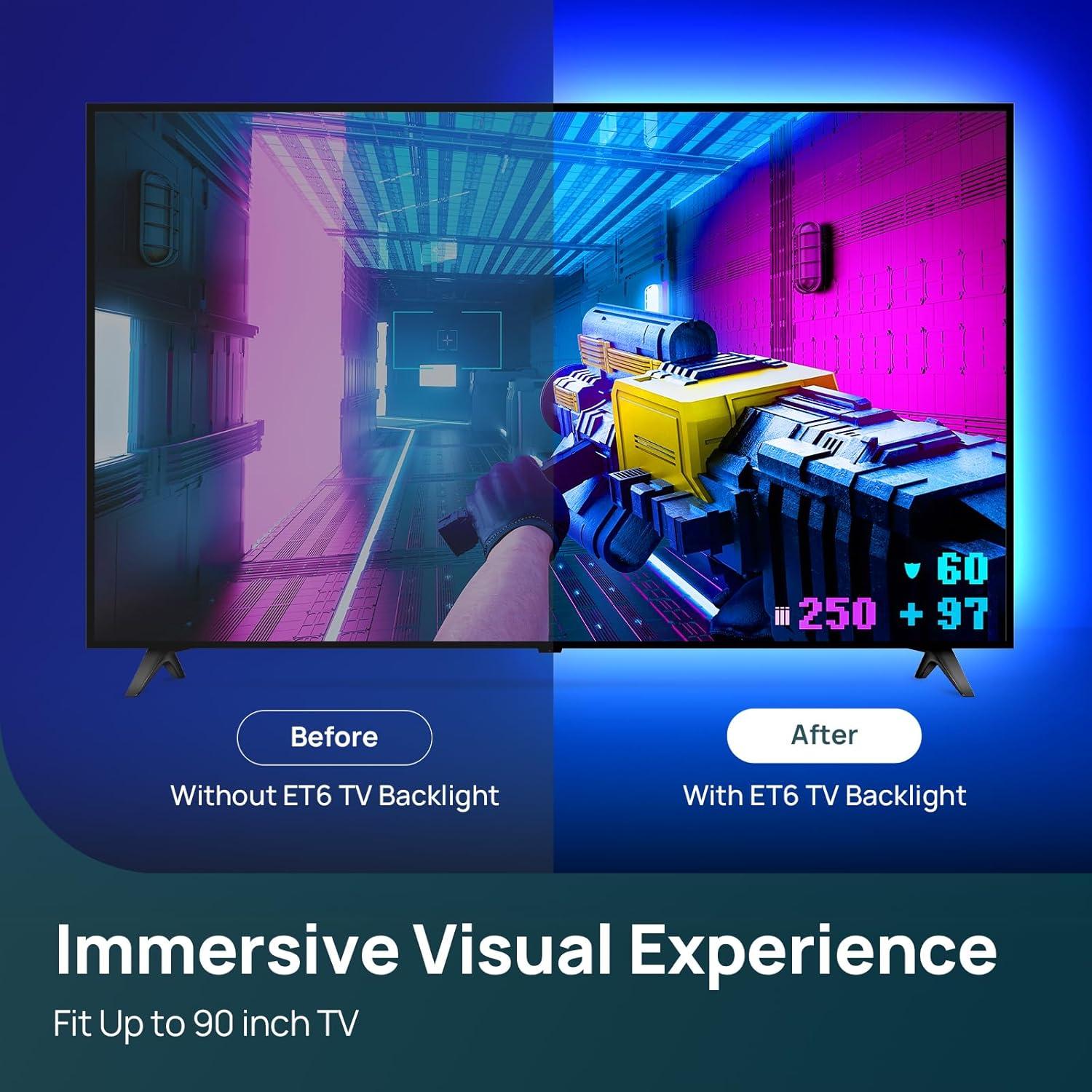 Direct HDMI Source Synchronization – Zero interference, zero delays—lighting synced straight from the source. Unlike TV apps or camera-based systems, ET6 connects directly to HDMI devices (consoles, streaming boxes) for flawless, instant synchronization. By reading the video signal before it reaches the screen, it guarantees zero latency and true-to-source color accuracy, unaffected by ambient light or Wi-Fi delays.