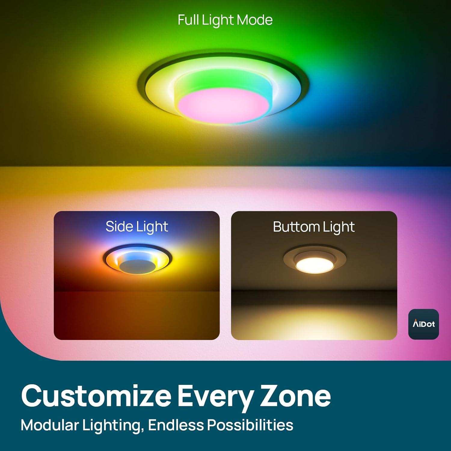 【TIPS】Measure your recessed can dimensions first to ensure compatibility. Do not use with dimmer-equipped fixtures (may cause flickering). Music sync requires microphone access so download AiDot App to start. Note: All smart devices only support 2.4G networks.