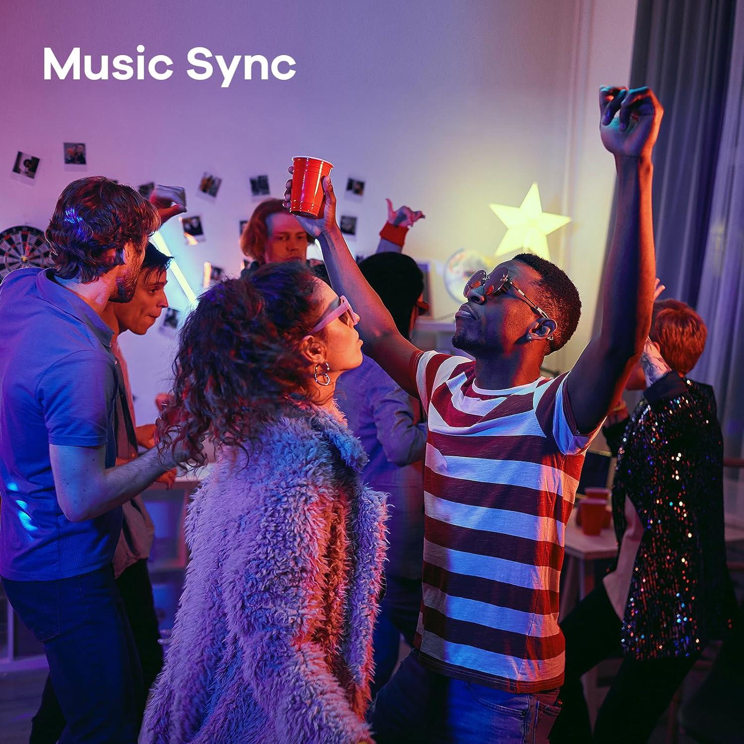 【Music Sycn & Preset Scenes】Linkind wifi light bulbs dance to the rhythm of your music, creating the perfect ambiance for any occasion. Choose from Party, Dynamic, Calm, or Auto Rhythm modes via the AiDot App. Plus, preset scenes let you decorate your home for any festival. (Microphone required, download AiDot App and grant permissions.)
