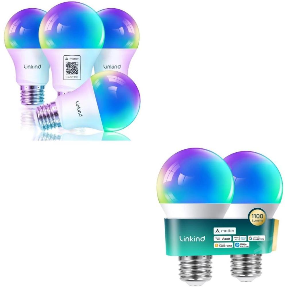 Linkind Matter Smart Light Bulbs 1100LM (75W Equivalent) 2Pack Bundle Matter Smart Light Bulbs 800LM (60W Equivalent) 4Pack (Compatible with Alexa/Apple Home/Siri/Google Home/SmartThings)
