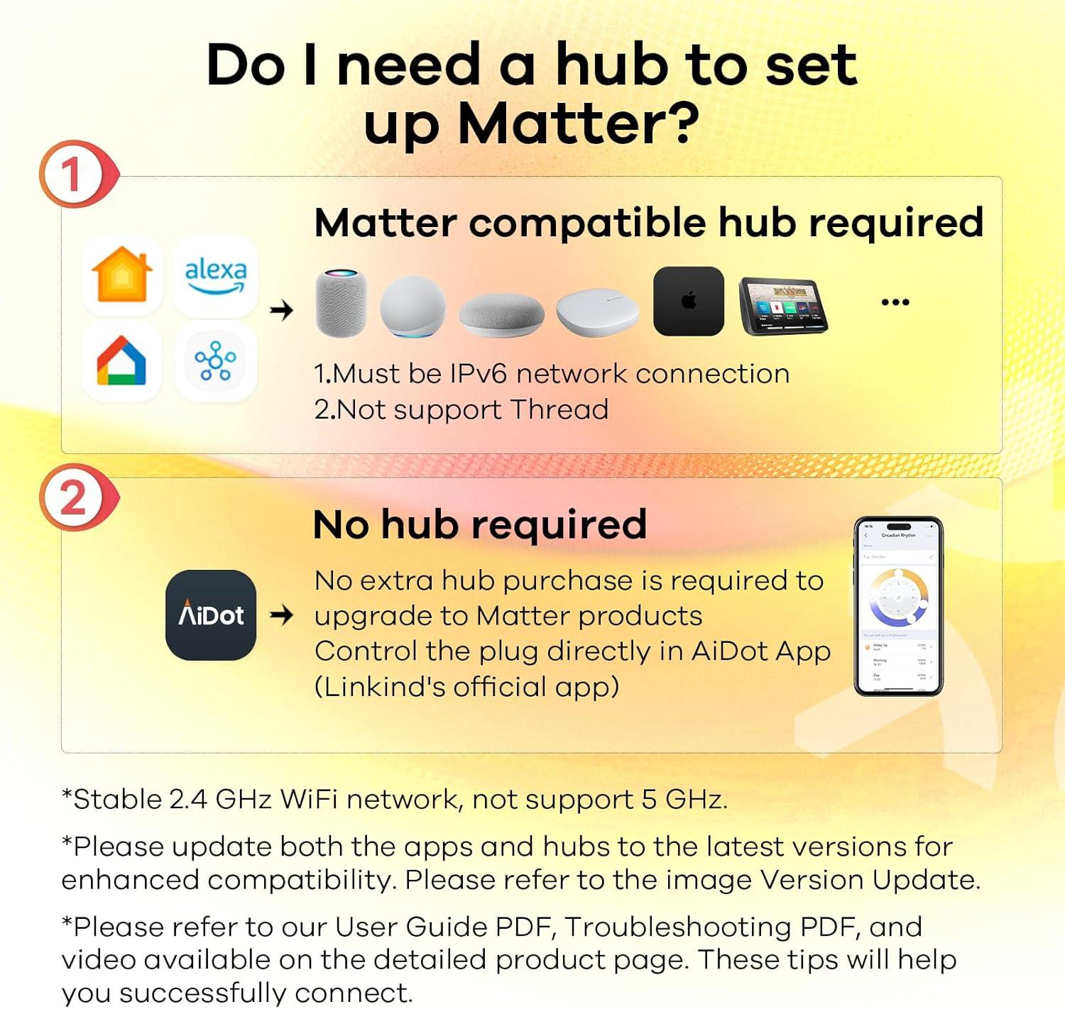 【Easy Setup, One Control】With Matter, Skip the step of downloading and registering multiple manufacturers' apps every time you buy a new device. Instead, head straight to certified smart home platforms like Apple Home, Alexa, Google Home, SmartThings, or AiDot to control all your Matter devices.