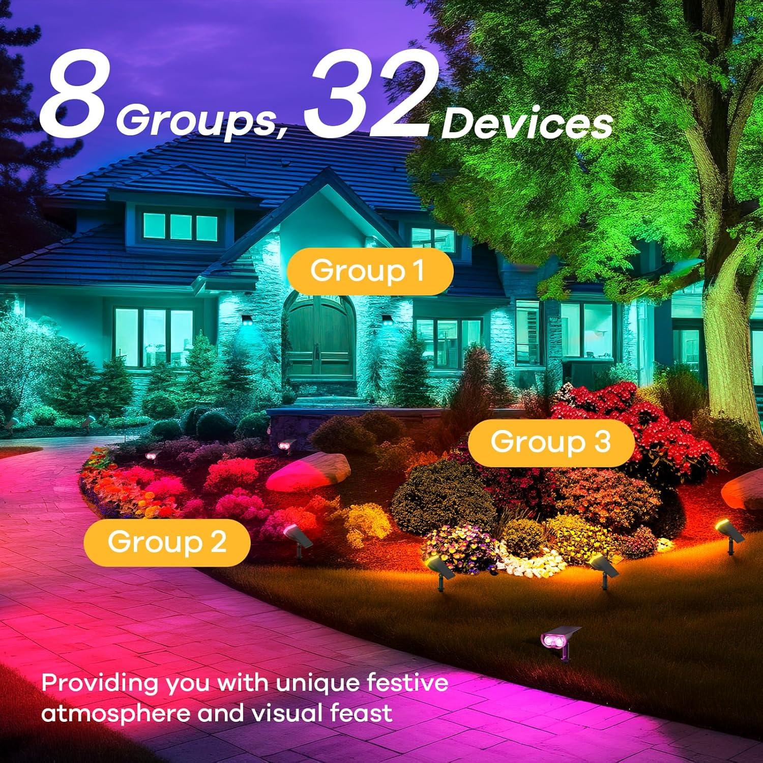 【Group Control & Security Alarm】The group control allows our spot lights outdoor to achieve coordinated lighting effects between different areas. You can create groups to achieve synchronized operation of the landscape lights, such as: synchronize scenes preset, color temperature and color selection. In motion mode, if one device detects someone approaching, all lights in the group will light up red and your APP will receive a security alarm message.
