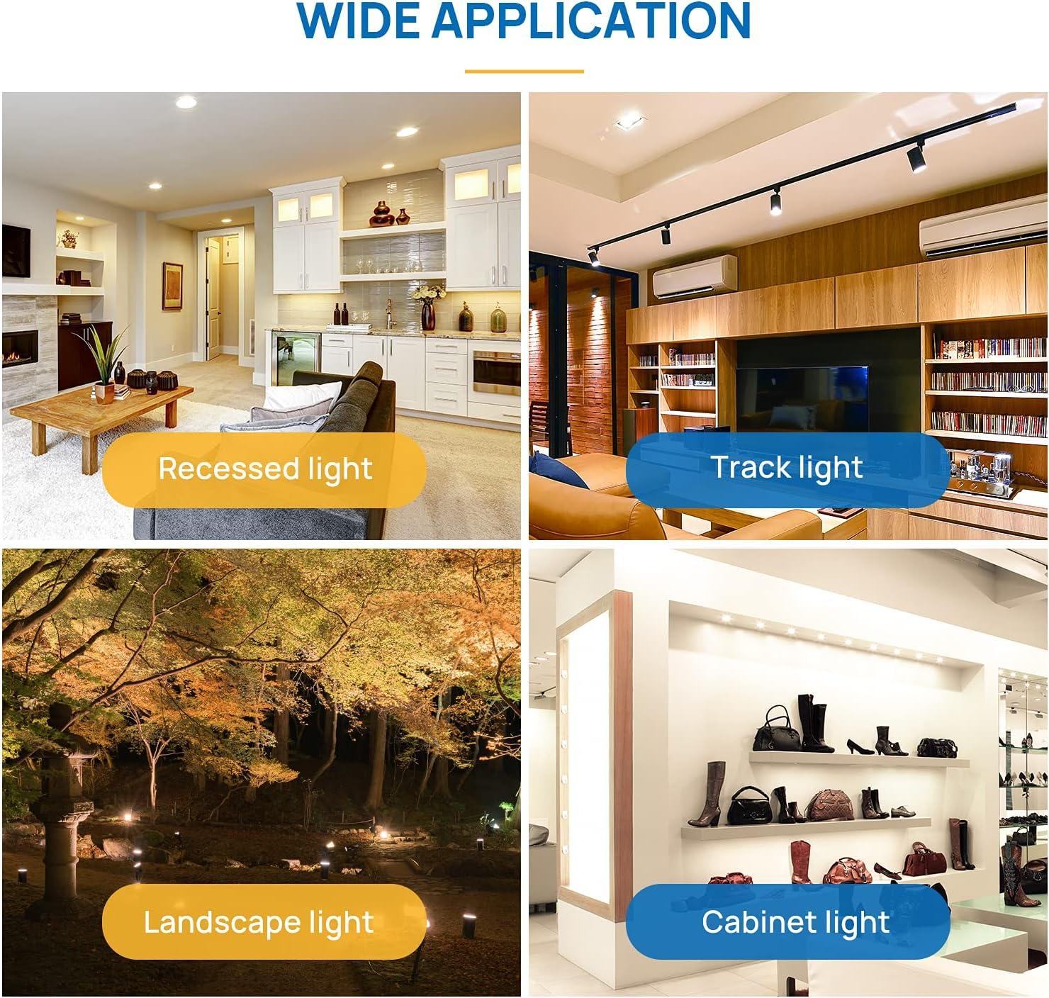 GU5.3 Spotlights: Linkind MR16 GU5.3 LED dimmable light bulbs have smooth dimming control. 6.5W equivalent to 70w halogen bulbs. They create comfortable ambience with 3000K warm white light. With 40 degree beam angle, Ideal for track lighting, landscape lighting, recessed lighting and spotlight in the house, office, gallery, museum, store, restaurant etc.