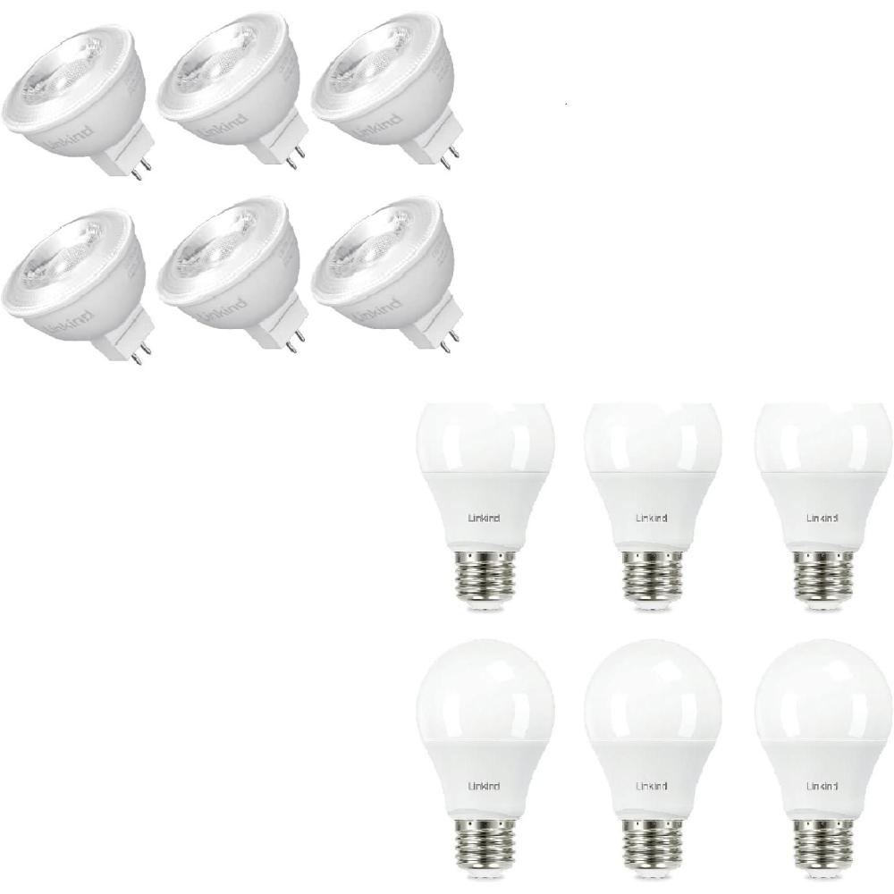 Value Package: This value pack includes 6 packs of Linkind A19 Dimmable LED Light Bulb (40w equivalent, 2700k) and 6 packs of MR16 GU5.3 LED Bulbs Dimmable.