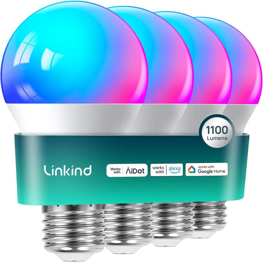 Linkind Smart Light Bulbs, 1600LM (100W Equivalent) Smart Bulb, Work with Alexa & Google Home, RGBTW Color Changing Bulb Music Sync, 2.4GHz Wi-Fi & Bluetooth, LED Alexa Light Bulbs 14W, A21 E26, 2Pack(4 Pack 75W)