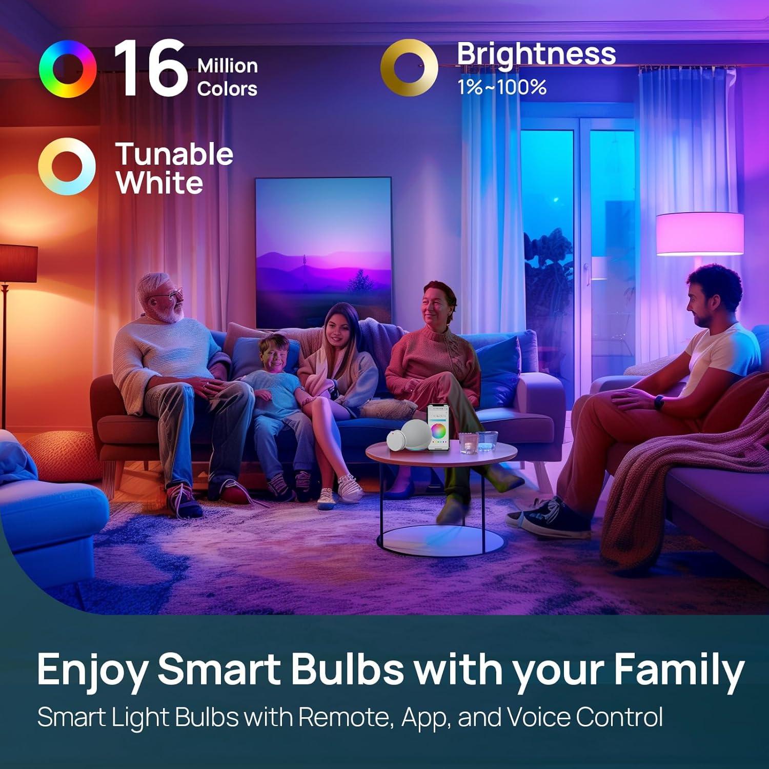 Smart Light Bulb – Smart Bulb That Work with Alexa & Google Home, LED Light Bulbs Color Changing 64 Preset Scenes, A19 E26 2.4Ghz WiFi Light Bulbs Dimmable 60W 800lm 6 Pack
