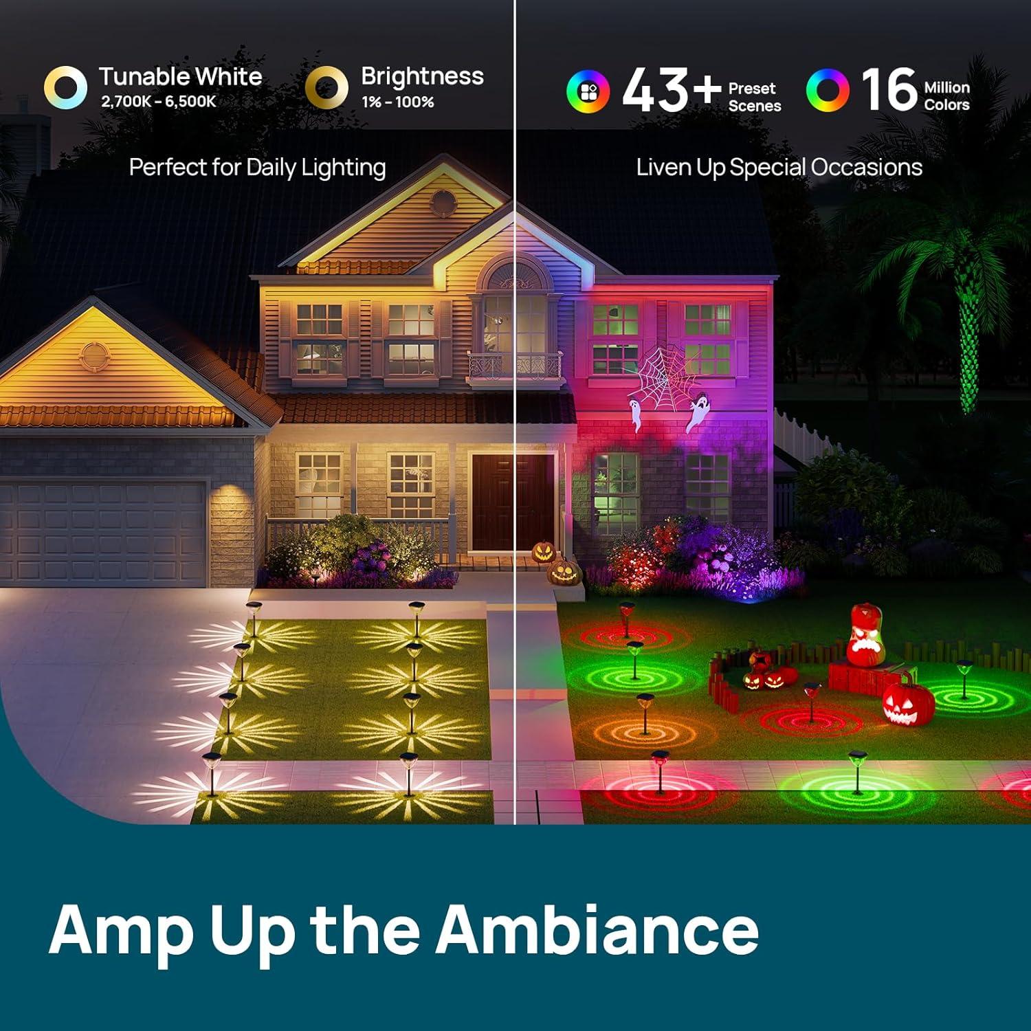【Light Shows, Music Sync & Scenes】Enjoy dazzling effects, preset scenes, and lights syncing to music. Color-changing landscape lights create the perfect mood for parties, holidays, and everyday ambiance.